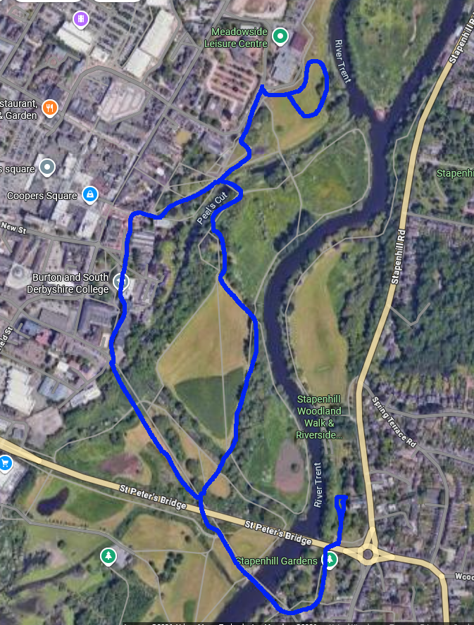 Once the group had finished their break, it was time for the walk to continue, in the safe knowledge that Lesley had offered to stay on ‘Swan Watch’ until the wildlife volunteer arrived. The group said farewell to Lesley & the swan, whom we named ‘Hope’ & made their way along the pedestrian viaduct over the Ferry Bridge & enjoyed the flowers at Stapenhill Gardens before crossing over St Peter’s Bridge to head along the paths by the River Trent. This was until Lesley telephoned with the good news that the volunteer from Linjoy (name checked by Lesley for Hope’s security) had safely collected Hope & was taking her to the sanctuary to be looked after. The group then about turned, following the same path back towards the pedestrian viaduct to meet back up with Lesley. In a slight alteration to the original planned route the group then walked back towards the library, stopping off for a short break at a picnic bench, shaded by the trees behind the market place where they discussed what else they might have been doing with their Saturday morning had they not come to the walk, with some participants stating they would have just stayed in bed. The group also discussed things they were appreciative of throughout the walk, including ‘giggling more than usual, having walked over 5000 steps, special trees, the new blossom on the trees & biscuits!’. After the short break, the group reconvened the walk back through to the library & chatted briefly about what they had enjoyed about the walk before everyone went about the rest of their day.